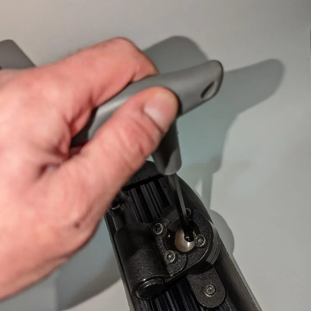 If the foam armrest feels loose but the ball joint is fully tight, there’s likely a single set-screw that’s the culprit.